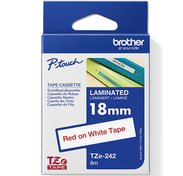 Brother TZE-242 Laminated Labelling Tape 18mm (Red On White)
