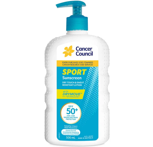 Cancer Council Sunscreen Dry-Touch Sport Lotion SPF50+ by Cancer Council - 500mL Sunblock, Water & Sweat Resistant, Enriched with Aloe & Vitamin E