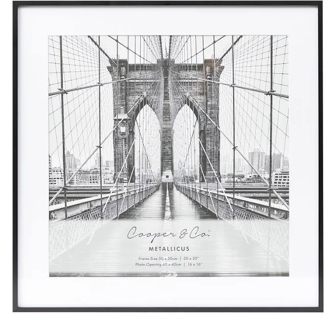 Showcase your family photos with Cooper & Co's stylish 50x50cm Mat to 40x40cm photo frames. Available in black and gold, with scratch-resistant tempered glass and brushed metal. Ready to hang, these frames include a mat board for a professional gallery look. Perfect for home or office.