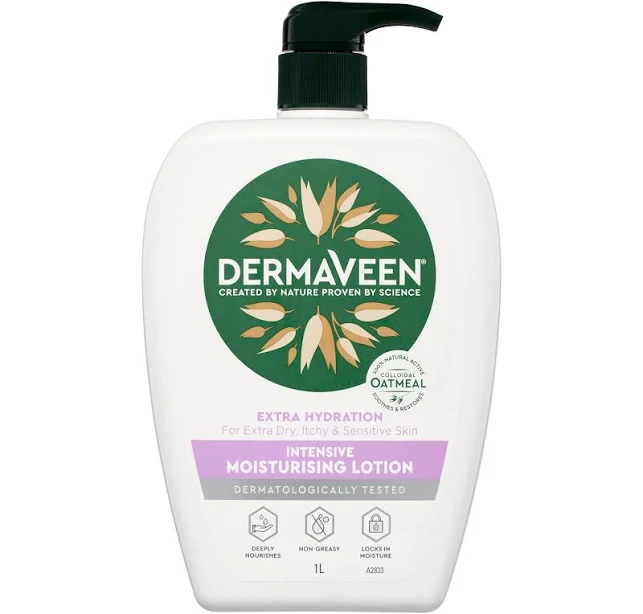 DermaVeen Extra Hydration Intensive Moisturising Lotion 1L | Dermatologically Tested, With Colloidal Oatmeal | Non-Greasy