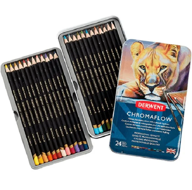 Derwent ChromaFlow Coloured Pencils Tin Set Rich Vibrant [24-Pieces]