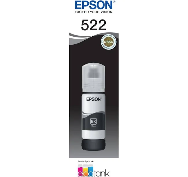 With the Epson T00M192 522 Black Ink Bottle, you can print vivid, high-quality documents and photos with ease. This genuine Epson ink is specially formulated to work with EcoTank ET-4700, EcoTank ET-2710, EcoTank ET-1110 and EcoTank ET-2720 printers, providing sharp text and rich, dark blacks on every page. Simply pour the ink into your printer's reservoir tank and enjoy low-cost prints without the hassle of cartridges. With enough ink to print thousands of pages, this bottle helps maximize your printer's potential while minimizing interruptions and maintenance. The quick-drying pigment ink produces smudge-free prints right off the page, making it ideal for both home and office use. Rest assured you're using ink designed for your printer with this genuine Epson product. Experience the convenience of bottled ink with the Epson T00M192 522 Black Ink Bottle today. The manufacturer's part number for this product is T00M192.