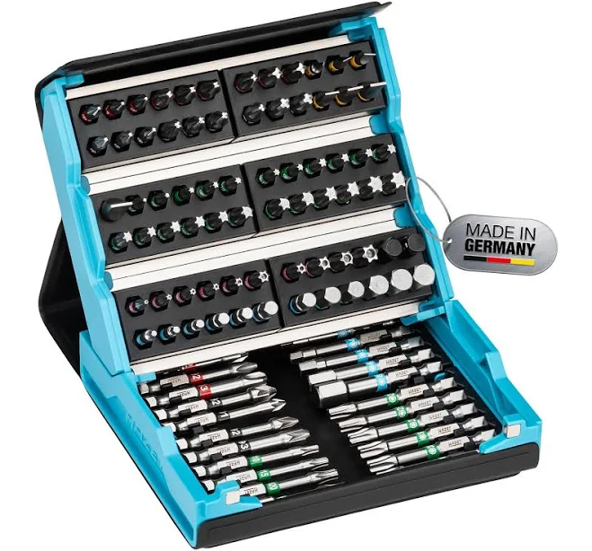Innovative Tool Storage Solution Are you tired of cluttered toolboxes and lost tools? Look no further than the Hazet 2200Sc-3 Smartcase Bit Set, 96 Pieces. This innovative tool storage solution combines the compactness of a textile case with the durability of a hard shell toolbox. The robust clamp holders keep tools in place, ensuring easy access when you need them. Multi-Functional Design The Hazet 2200Sc-3 Smartcase Bit Set features a unique design that allows it to open in three ways: standing, foldable, or flat. This versatility makes it perfect for use in a variety of settings, from workshops to construction sites. The magnetic fastener ensures quick tool retrieval, saving you time and increasing productivity. Whether you're a professional or a DIY enthusiast, this comprehensive toolset has everything you need to tackle a wide range of tasks and projects. With its durable design and comprehensive toolset, this is an investment that will pay for itself many times over. Upgrade Your Toolbox Today Don't settle for a cluttered and disorganized toolbox any longer. Upgrade to the Hazet 2200Sc-3 Smartcase Bit Set, 96 Pieces, and experience the difference for yourself. Order now and take the first step towards a more efficient and productive work environment.