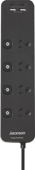 Jackson 4 Way Fast Charge USB-C/A Surge Protected Powerboard