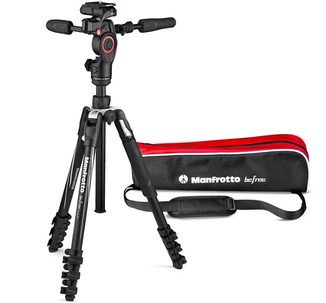 Manfrotto MKBFRLA4BK-3W Befree 3-Way Live Advanced Tripod Kit, Tripod and Fluid Head Aluminium for Cameras and Camcorders up to 6 kg, Ultra-Compact, for Content Creation, Photo and Video Black