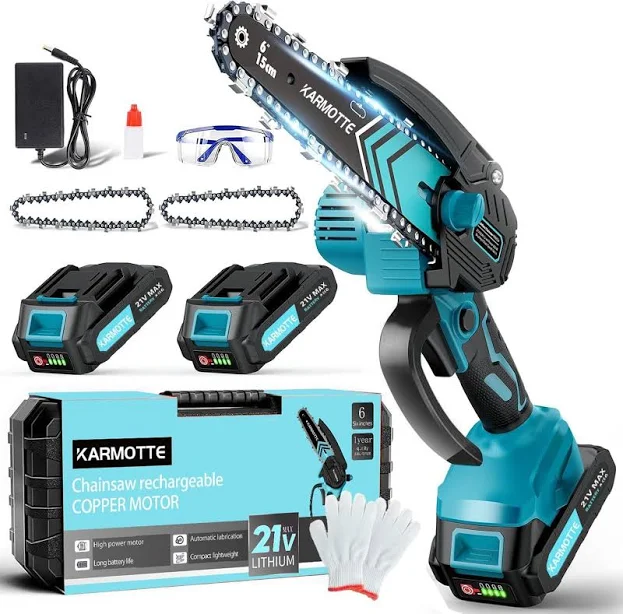Mini Chainsaw Cordless 6 Inch, Handhled Chainsaw with 2 Batteries & Oiling System, Electric Chain saw for Tree/Wood Cutting, Christmas Birthday Gifts for Men Dad Him Stocking Stuffers