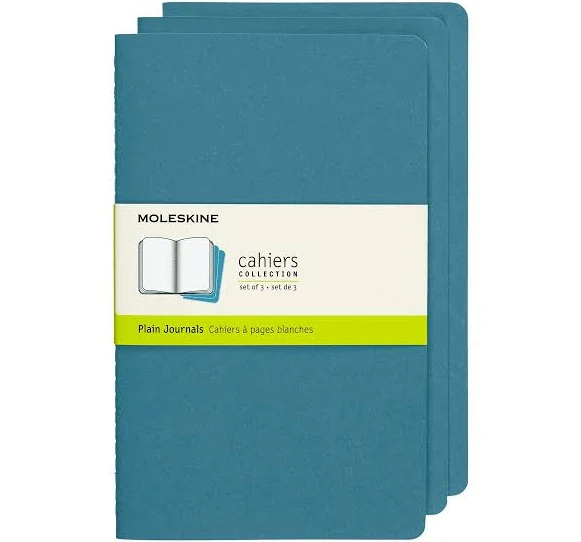 Moleskine Cahier Soft Cover Notebook Plain Set X-Large (Brisk Blue) [3-Pieces]