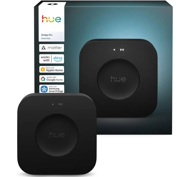 The heart of the Philips Hue smart lighting system, Hue Bridge Pro allows you to connect and control over 150 lights and over 50 accessories. Simply plug it in and use the Hue app on your smartphone or tablet device to set routines, timers, customised light scenes, and more.