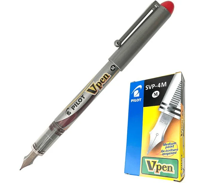 The Pilot V-Pen is a disposable, liquid ink fountain pen. Premium writing feel with a modern ink mechanism ensuring the ink supply remains strong and consistent to the last drop. You will be delighted by the smoothness of the Pilot V-Pen lines, the intensity of its Colours and its perfect ink flow.