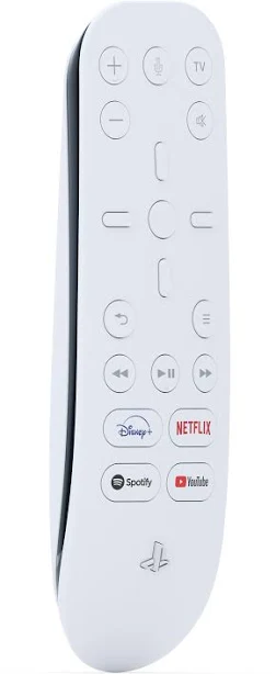 Explore a world of entertainment on your PS5 with this intuitive media remote. The PS5 console provides endless entertainment, from video games, streaming services and more. The Media Remote provides a quick and easy way for you to navigate the console and conveniently control their movies and entertainment. Design The PS5 Media Remote features a slick design featuring the two-tone colour combination that is featured on the console itself. Media Playback Controls With built-in play/pause, fast forward and fast reverse buttons, the media remote lets you easily control your media at the push of a button. TV Settings Adjust the volume and power settings of compatible TVs with the built-in IR transmitter. 2 Discover a world of movies, streaming services and entertainment with ease, thanks to the PS5 media remote. 1 Internet and account for PlayStation Network required. Streaming services may require paid subscription and are not available in all countries. 2 PS5 System software update may be required.