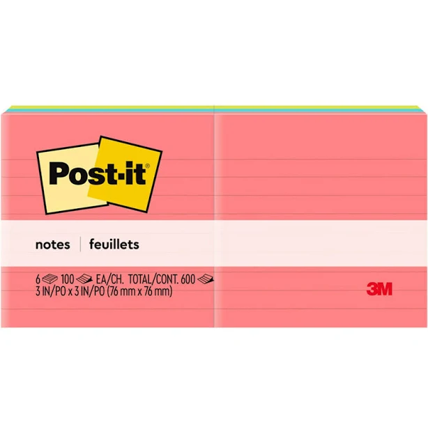 Post-It Ruled Lines Notes 73x73mm Capetown (Assorted) [6 Pads]