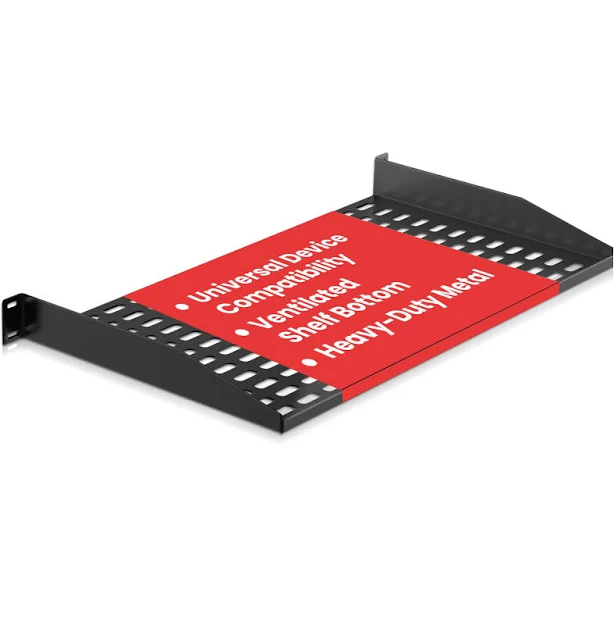 Pyle 2-Pc 1U Server Rack Shelf, Vented Shelves for Good Air Circulation, Cantilever Mount, Wall Mount Rack, Universal Device, Cabinet Shelf, Computer Case Mounting Tray, Black- PLRSTN14UX2