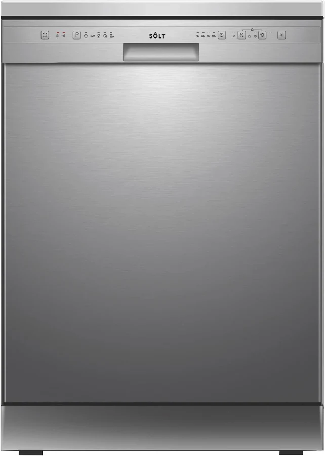 This Solt Freestanding Dishwasher in sleek stainless steel is the perfect kitchen appliance. With 13 place settings and 5 different programs, it handles all your dirty dishes with ease. The eco mode uses just 11 litres of water per wash, helping you save on bills. You can adjust the upper basket to fit taller items, and the child lock keeps little hands safe. It runs quietly at 52 decibels, so you can chat or watch TV while it works. The half load option is great for smaller loads, and you can delay the start by up to 12 hours. Just remember, you'll need a pro to install it. The model number is GGSDW6013X.