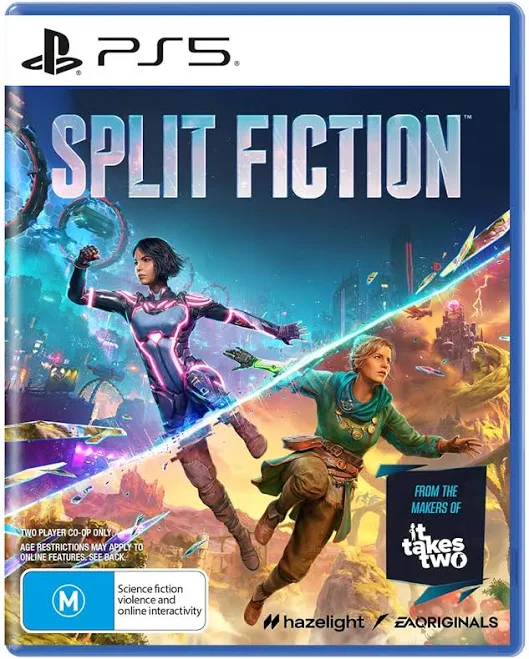 Split Fiction is a unique co-op action adventure from the creators of It Takes Two. Team up as Mio and Zoe to escape a bizarre simulation filled with unexpected challenges. Co-op adventure. Work together to escape a bizarre simulation. Thrilling gameplay. Coordinate actions and overcome unique challenges. Crossplay enabled. Play with friends across platforms using Friend’s Pass. Diverse worlds. Explore sci-fi and fantasy settings with new mechanics. Unique abilities. Use new powers to solve puzzles and progress. Unexpected twists. Encounter surprising creatures and challenges. Strength of teamwork. Mio and Zoe must rely on each other to escape. Unpredictable journey. Navigate through strange and imaginative worlds. True co-op experience Split Fiction is a thrilling co-op adventure built for two players. Coordinate actions, solve puzzles, and face challenges together with crossplay support across PS, Xbox, and PC using the Friend’s Pass or in split screen co-op. Created by Hazelight, the makers of It Takes Two and A Way Out, it’s an unpredictable ride of cooperation. Endless surprises Switch between sci-fi and fantasy worlds, where every level offers new mechanics and abilities. From battling an evil kitty to riding gravity bikes and sandsharks, you’ll face diverse challenges, including platforming and puzzles, with each twist more surprising than the last. The strength of teamwork Mio and Zoe begin as strangers but must rely on each other to escape the simulation. As they traverse their own imaginative creations, the duo learns the true power of friendship through unexpected and bizarre challenges. Their journey hinges on teamwork, no matter the odds.