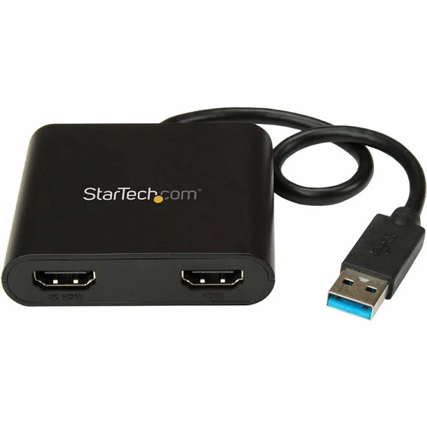 StarTech.com USB 3.0 to Dual HDMI Adapter - 1x 4K 30Hz & 1x 1080p - External Video & Graphics Card - USB Type-A to HDMI Dual Monitor Display Adapter - Supports Windows Only - Black (USB32HD2)