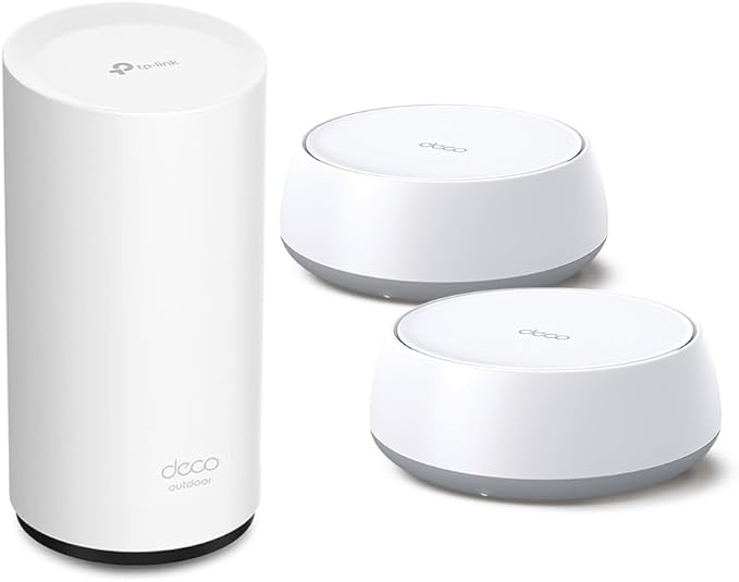 TP-Link Deco Wi-Fi 7 Indoor/Outdoor Mesh, BE25-Outdoor & BE22 2-Pack, Garden/Patio Coverage, Weatherproof, Seamless Roaming, Dual-Band