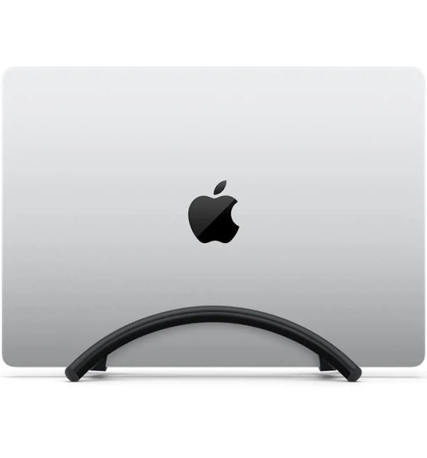 Stand for MacBooks and laptops. Holds MacBooks or laptops vertically, creating space on the desk. Compatible with all MacBooks or laptops up to a height of 2.5 cm, it provides room for a large monitor, even on smaller desks (used with an external keyboard and mouse). The weight of the computer gently brings the support arches of the BookArc Flex together, keeping the MacBook or laptop upright. Designed to support current and future MacBooks and laptops. The rubber contact surfaces protect the laptop. BookArc Flex is the new vertical desk stand that is compatible with all MacBooks and laptops up to a thickness of 2.5 cm. BookArc Flex maximizes desk space by holding the MacBook or laptop vertically while connected to a monitor, keyboard, and mouse. It transforms your MacBook or laptop into a desktop computer. Place your MacBook in, and the laptop's own weight pulls the support arches of the stand together. BookArc Flex adapts to your MacBook or laptop now and in the future, as it automatically adjusts to any laptop size up to 2.5 cm in height without additional inserts. Optimize your desk.