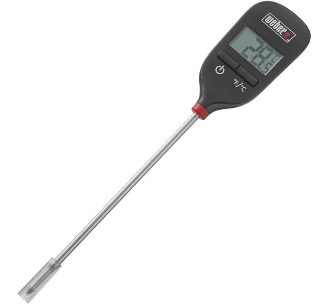 Grill and barbecue foods to perfection with the help of this Weber Instant-Read thermometer. The barbecue thermometer can easily be switched between Fahrenheit and Celsius temperature to suit your recipe. The digital temperature results are easy to read and a sampling cycle takes less than 15 seconds for quick results. The auto-shut off function engages after 10 minutes of inactivity, so you don't waste power when the thermometer isn't in use. The BBQ thermometer also includes a protective tip for safe and easy storage. Digital temperature read-out. Can switch between Fahrenheit and Celsius. Auto shut off after 10 minutes of inactivity. Fast, accurate digital temperature readout.